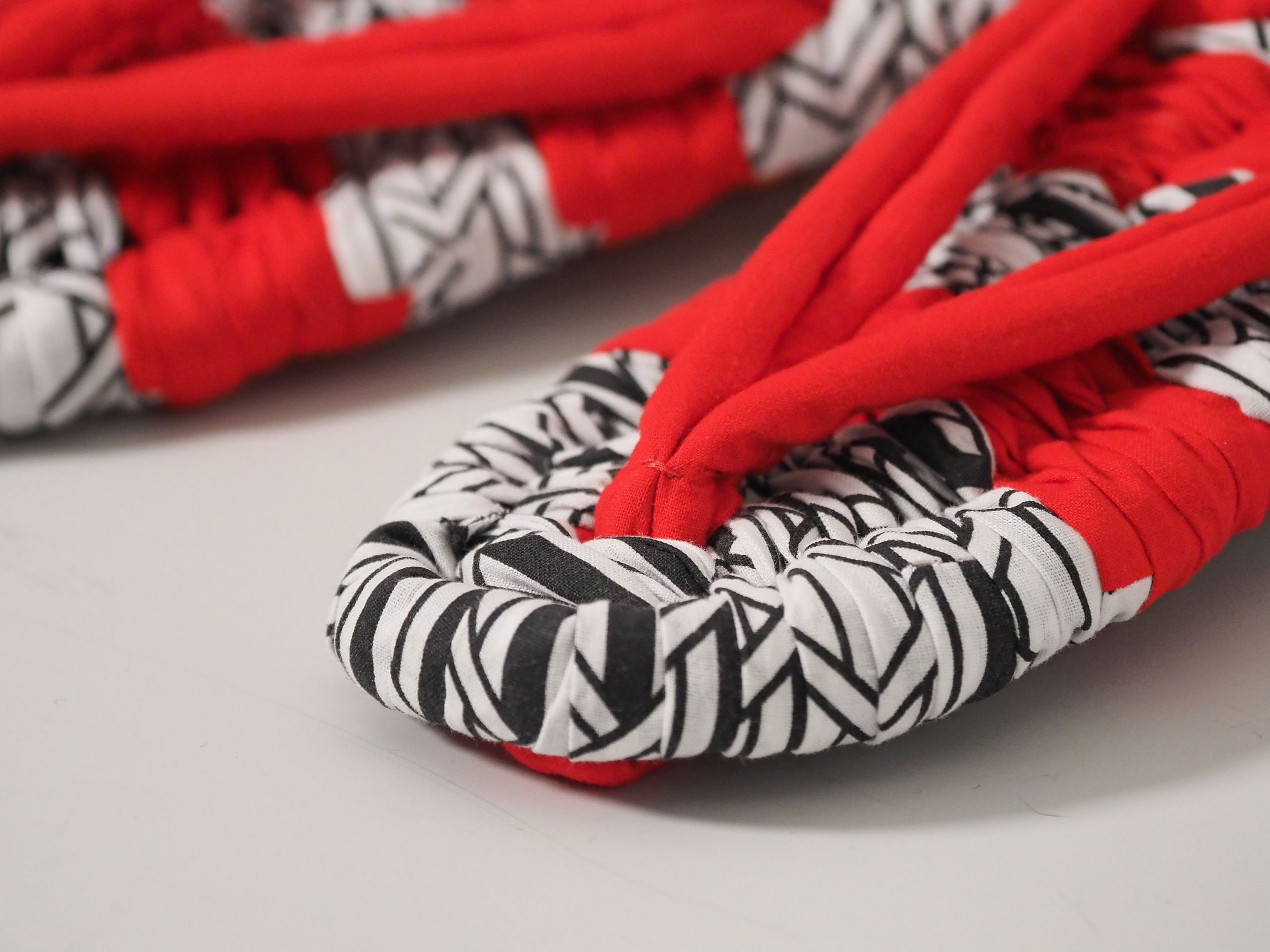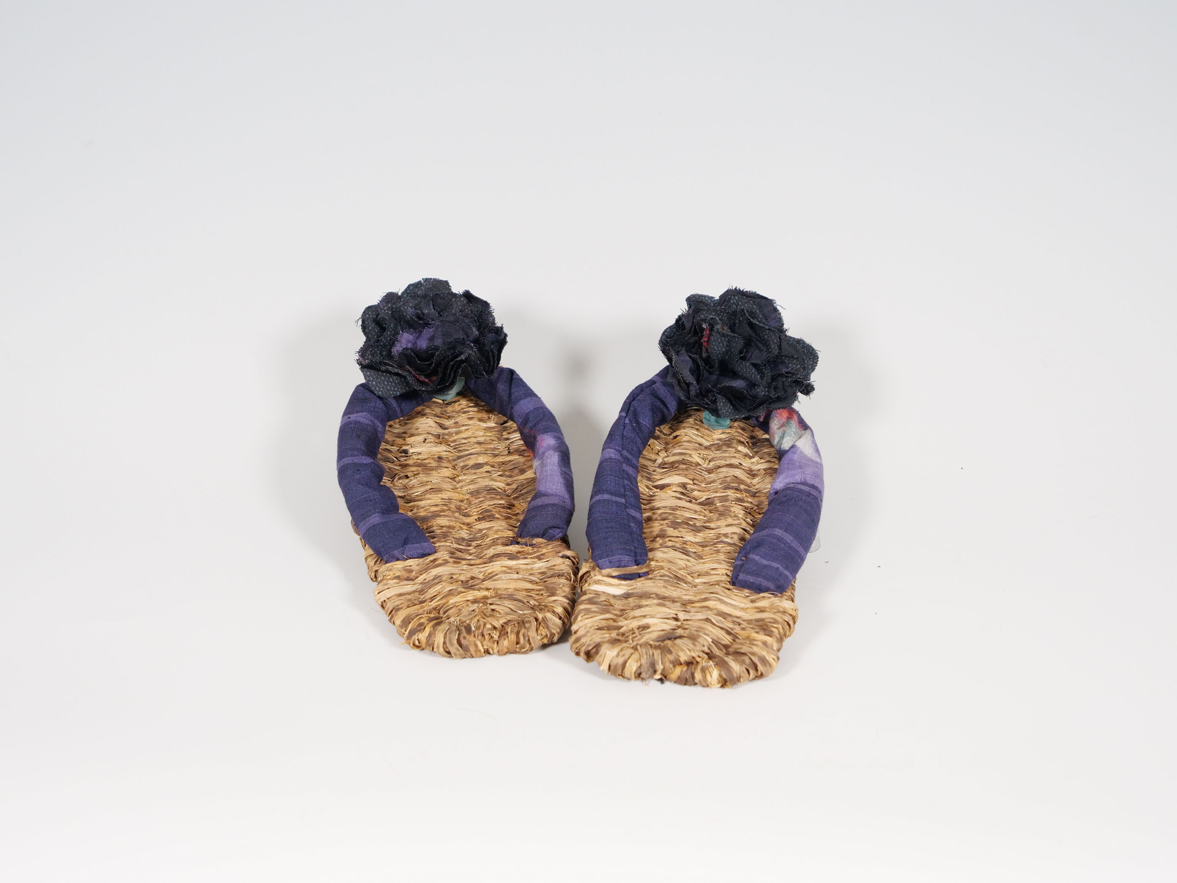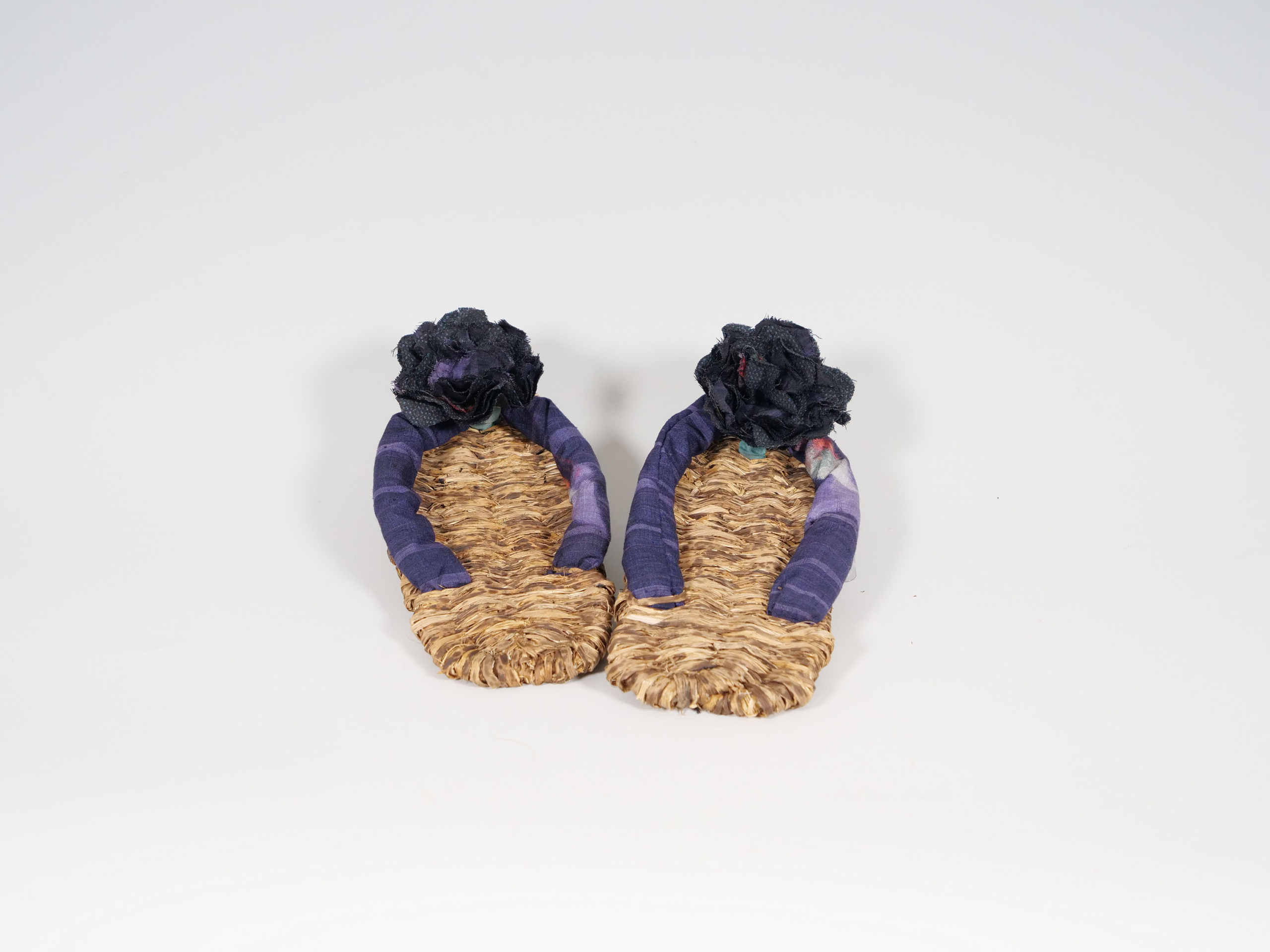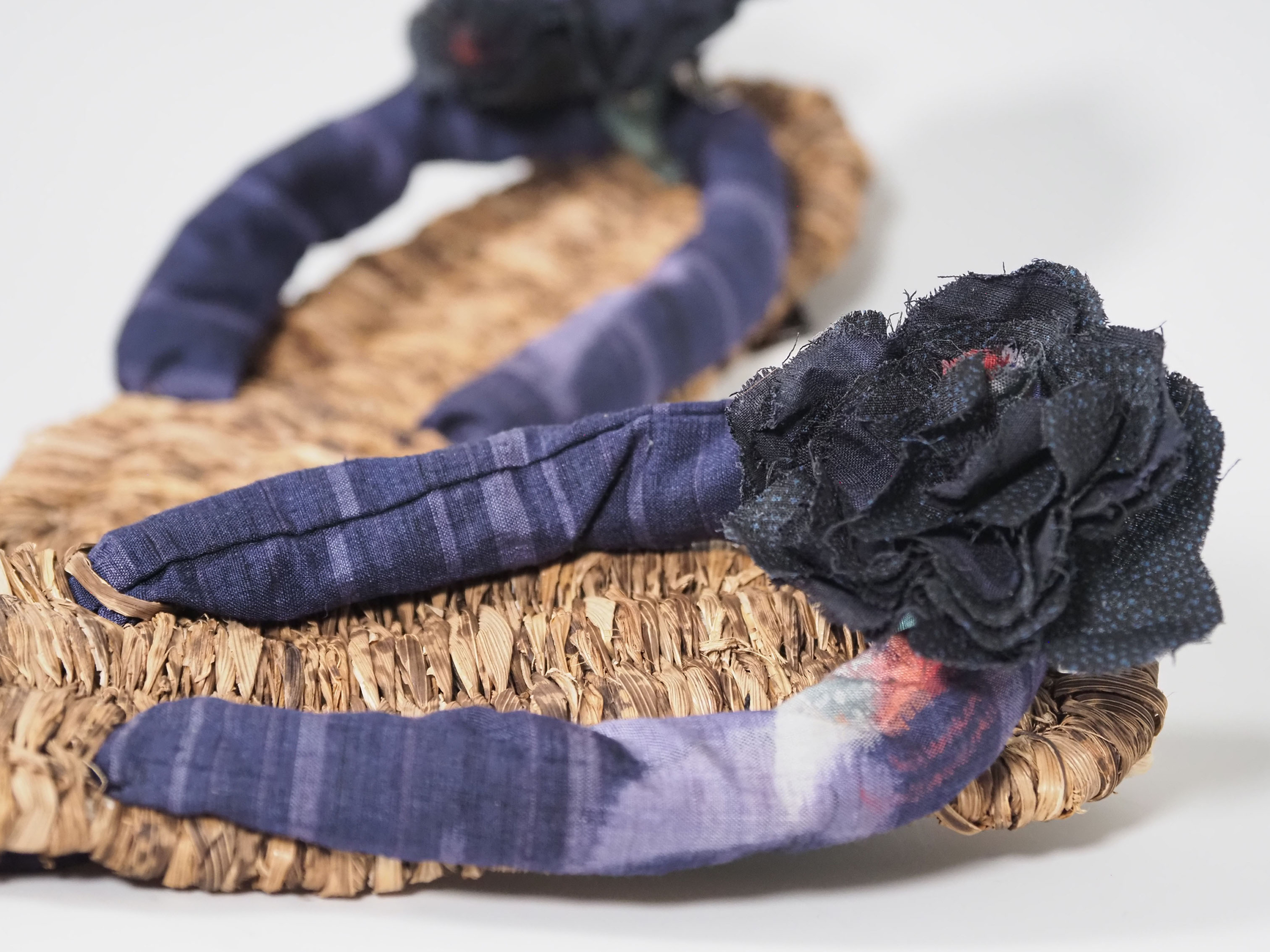 知り合いの山から採取し、保存していた竹皮を使用。草履は編んだ経験がなく、完成するか不安でした。本やユーチューブで何度も学習。つくる手順がわかってからは、慣れ親しんだ竹皮と私の間柄、癖も長所もよく知っています。できる!という確信がありました。竹皮が生きている感じがして、いつものように対話しながら編みました。