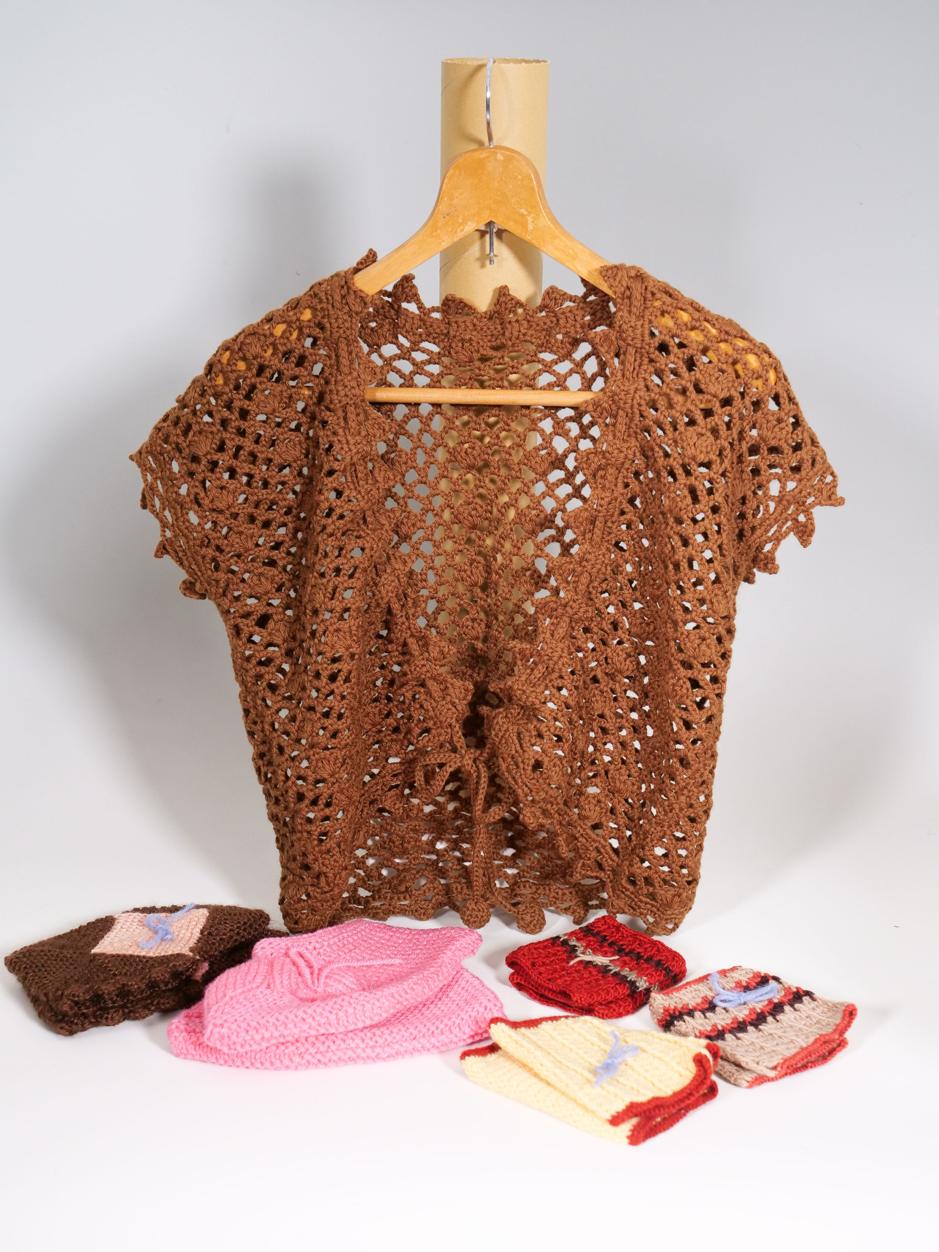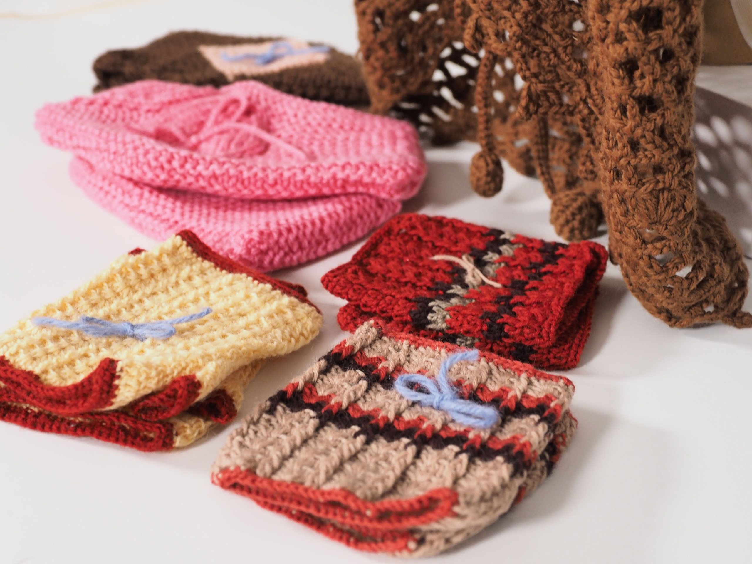 手編みを趣味としていて、今回のベストは、買い置きしていた並太の糸を利用して編みました。昔に編んだセーターやカーディガンをほどいて、ハンドウォーマーをたくさん編んでは知人にプレゼントして喜ばれています。