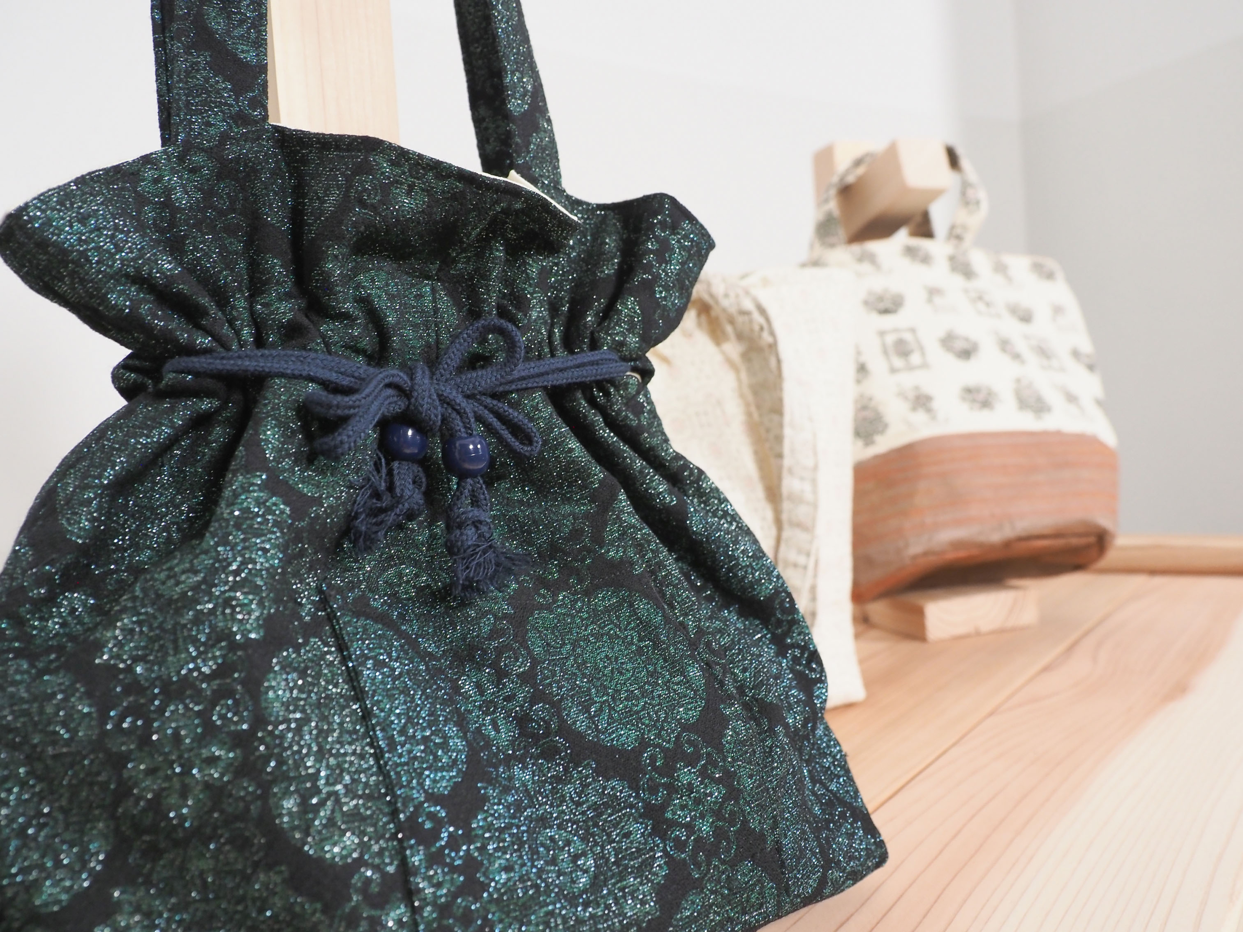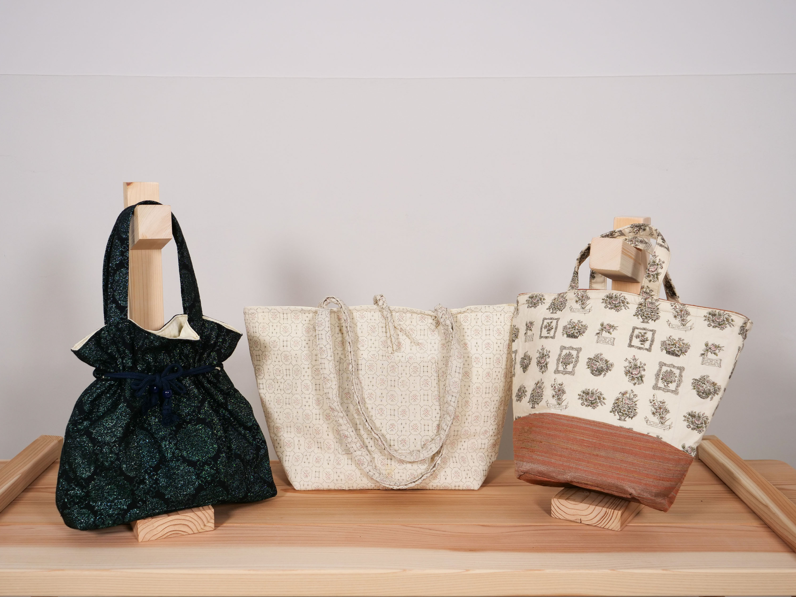 着物をほどいて、バックや小物をつくっています。縫い物が大好きでつくっていると楽しくて。ときには、「この生地でつくってください」、「私の家にある着物も使ってください」と言われることもあり、くださった方にはリメークしてお返ししています。