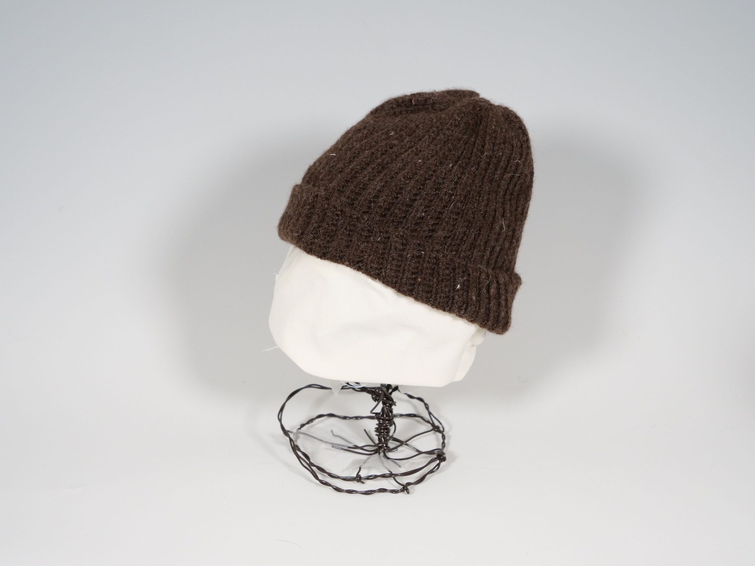 ミュールジング(※)を法律で禁止しているニュージーランド産の毛糸を使い、ニット帽を編みました。「ジャッキーの毛糸」という毛糸の商品名からタイトルを付けました。私たち人間は、様々な動植物によって生かされています。羊の毛を編み、寒さから身を守るニット帽をつくることを通して、改めてそのことを実感しました。
