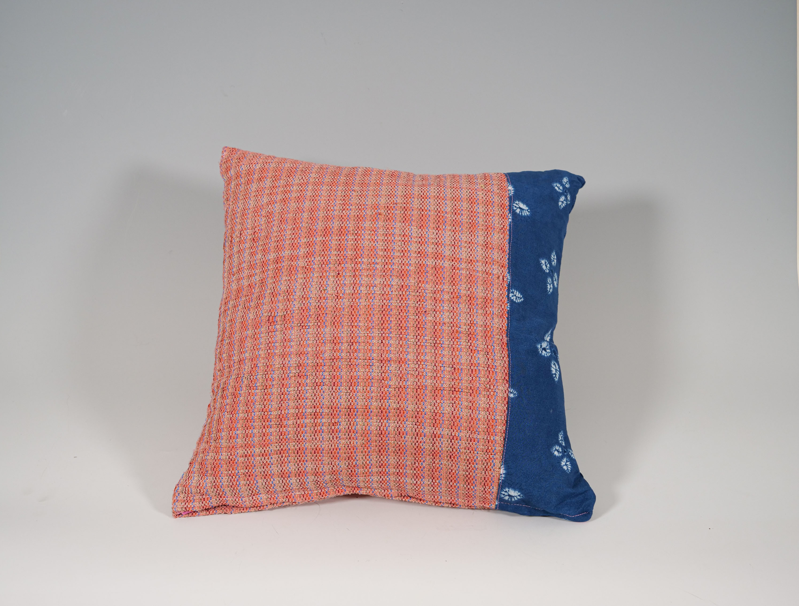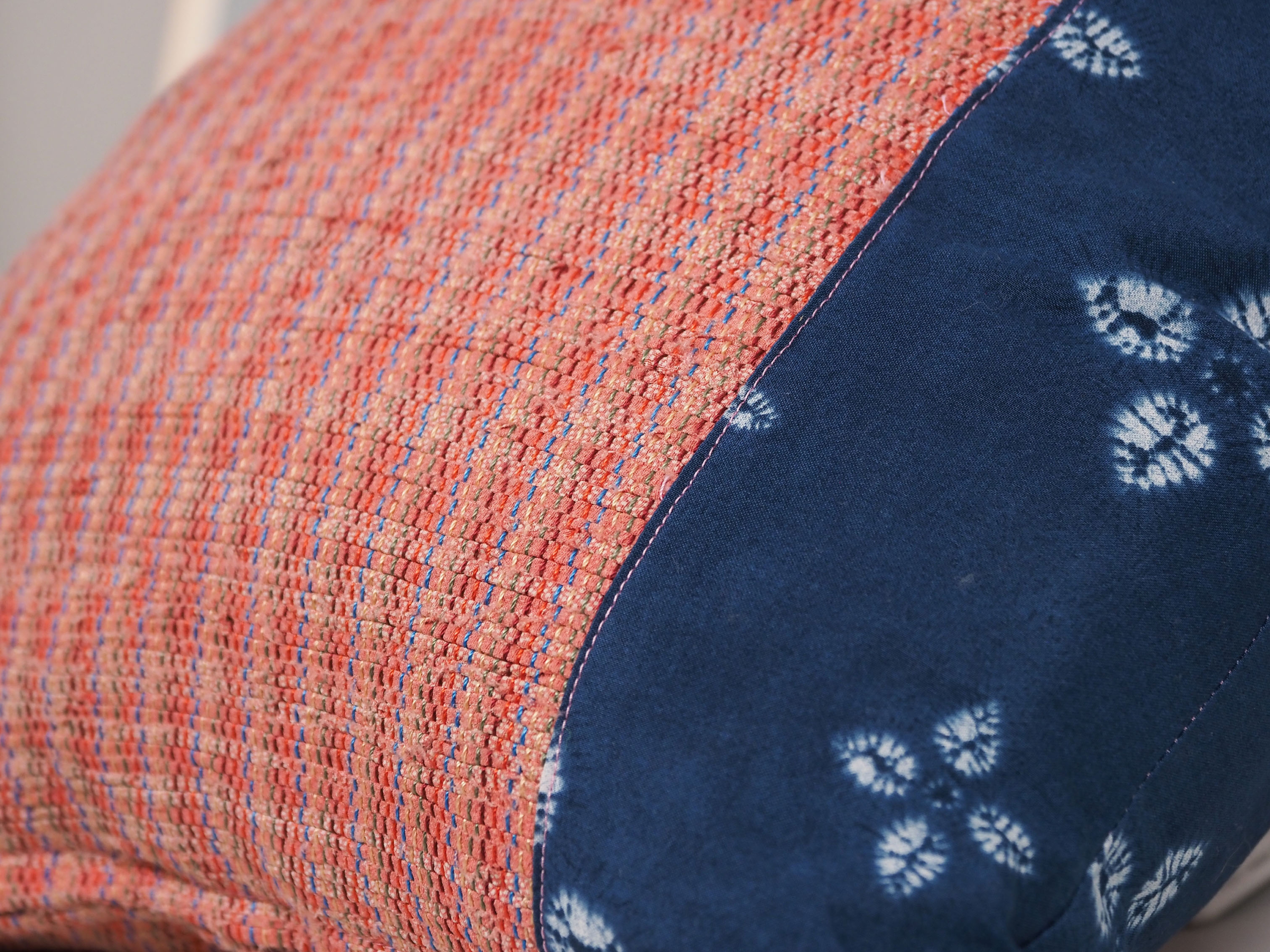 お世話になった方から頂いた、着なくなった着物を裂き織りにして布にし、残っていた端切れの布と合わせて、感謝の思いを込めて、クッション(カバー)をつくりました。