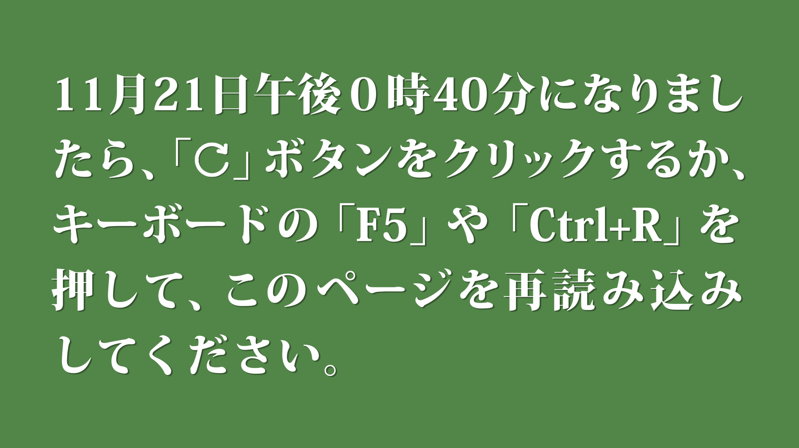 | 視聴方法 | 11月21日、午後0時40分になりましたら、このウェブページに再度アクセスしてください。 |