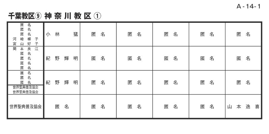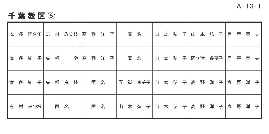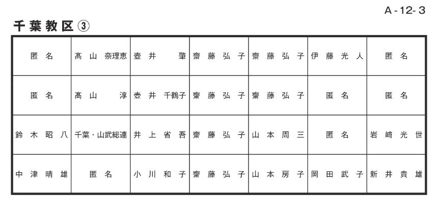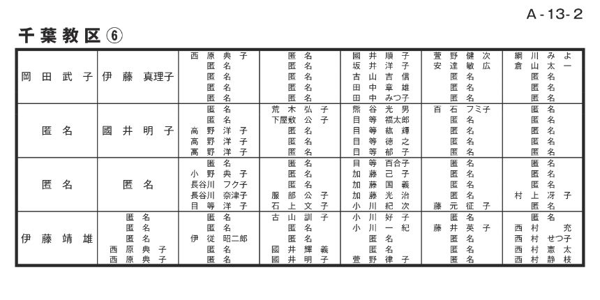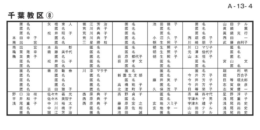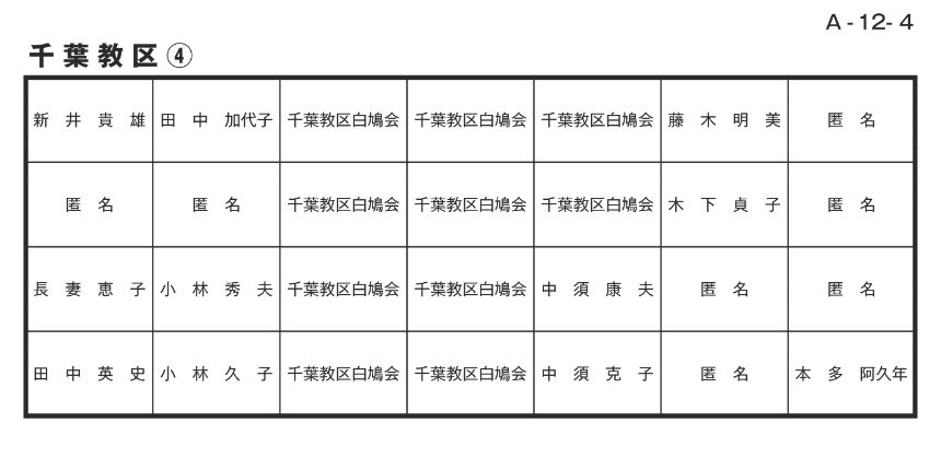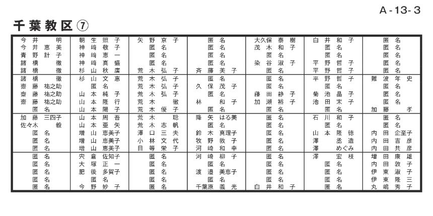 寄付者名掲示 千葉教区