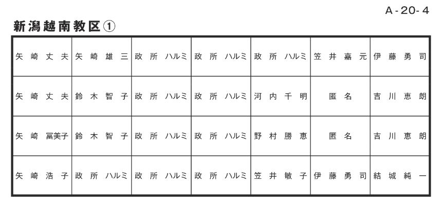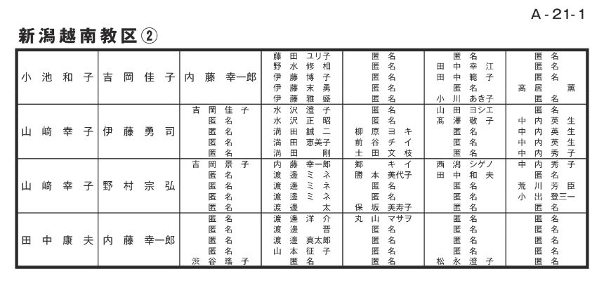 寄付者名掲示 新潟越南教区