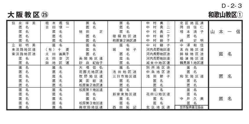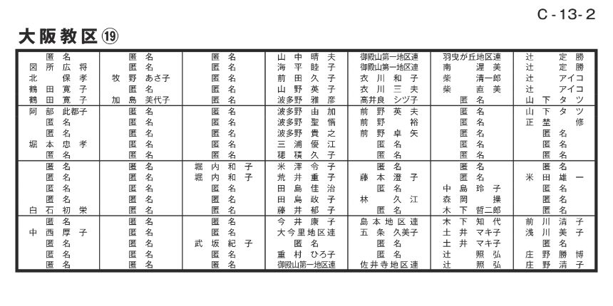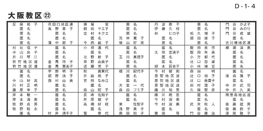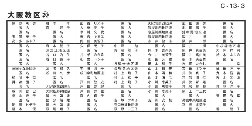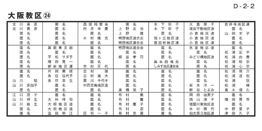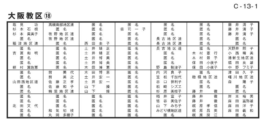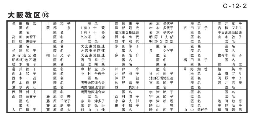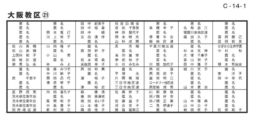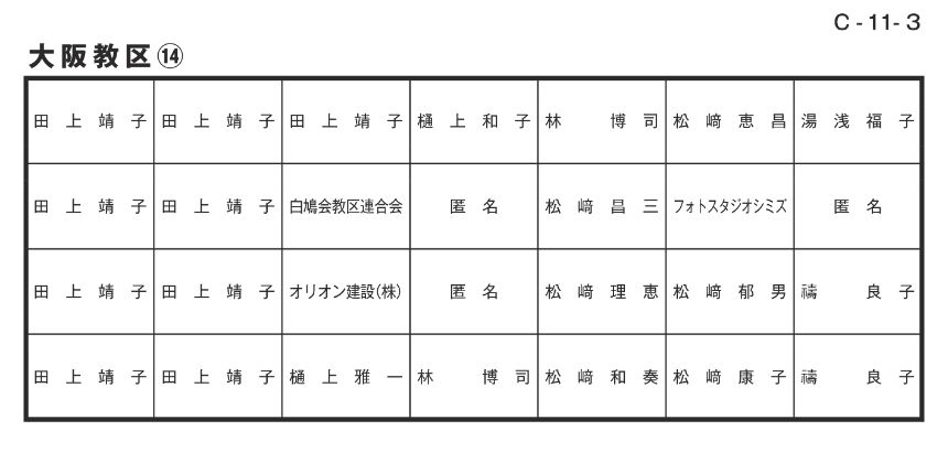 寄付者名掲示 大阪教区