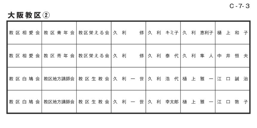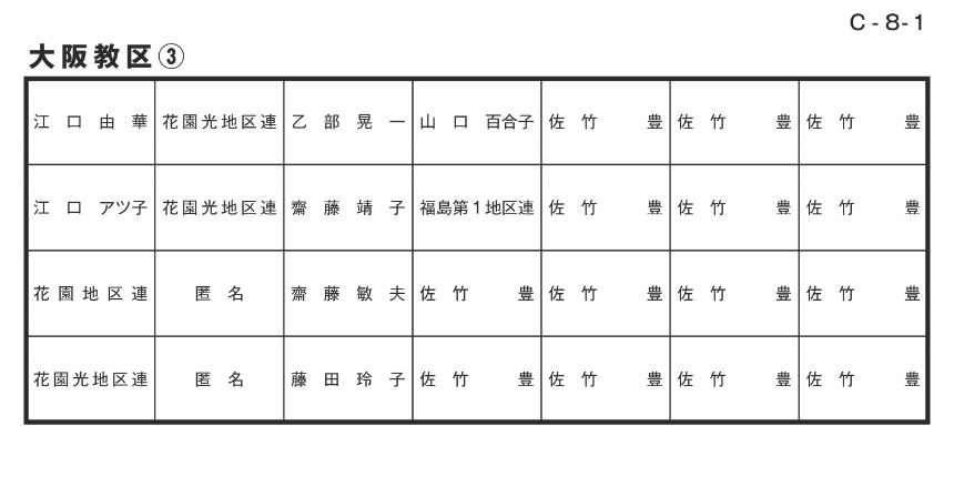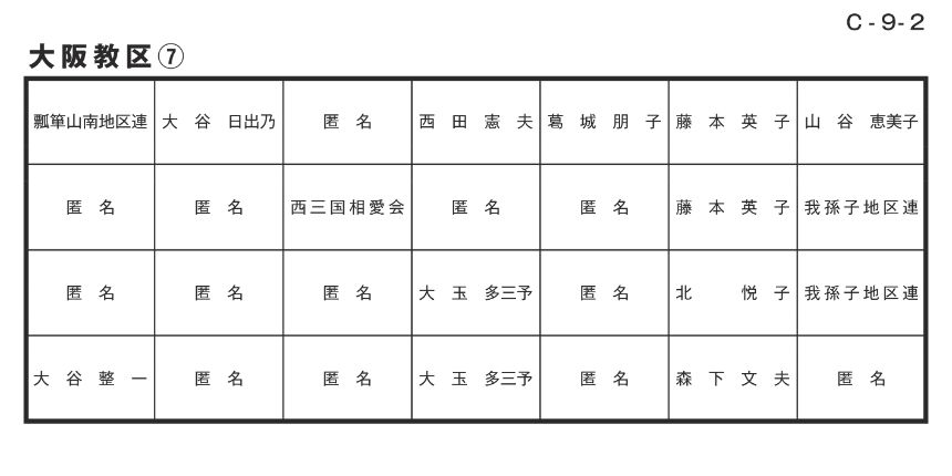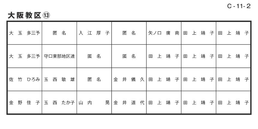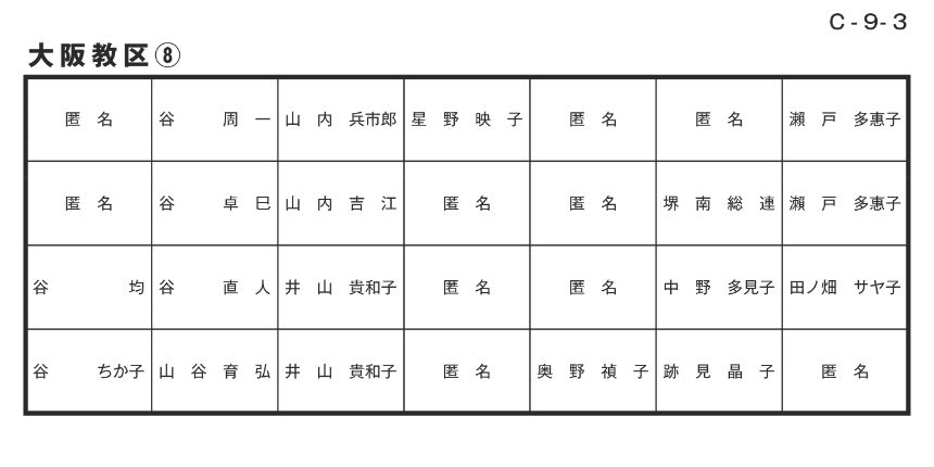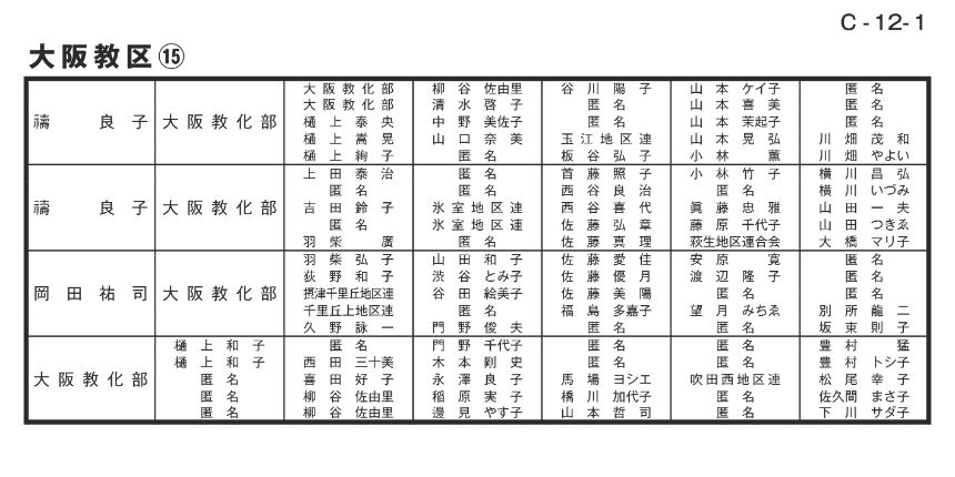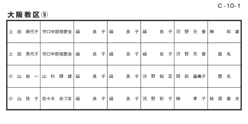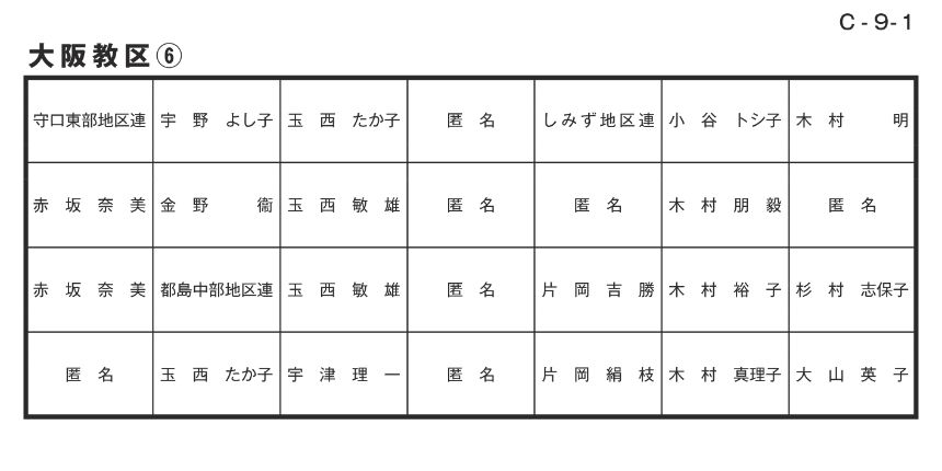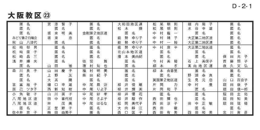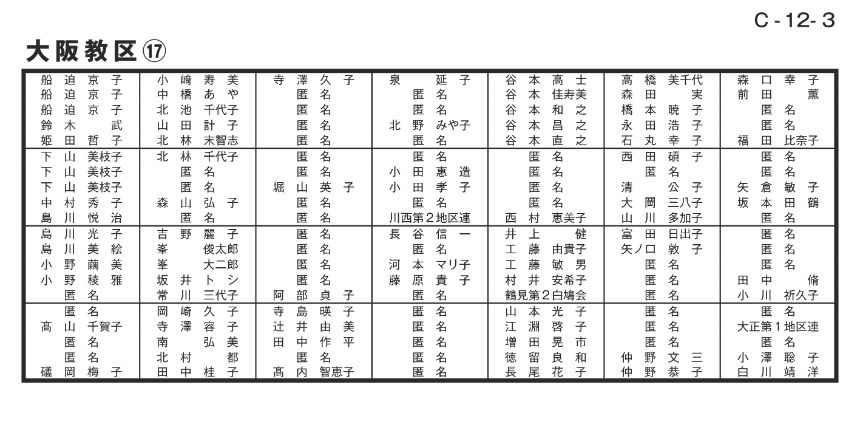 寄付者名掲示 大阪教区