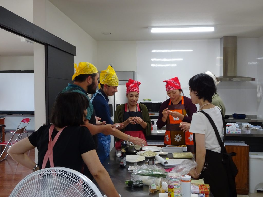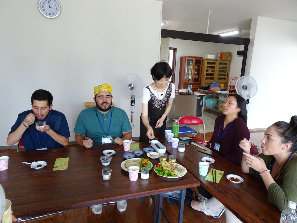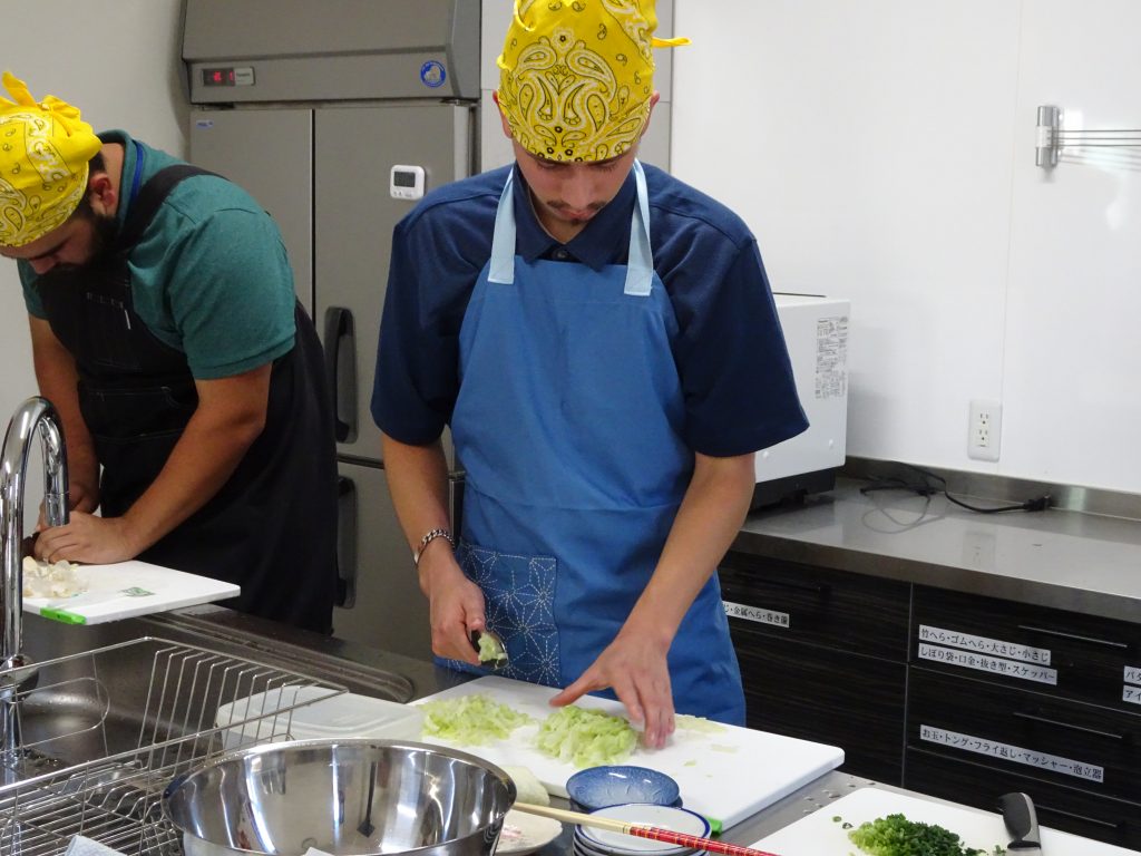 インターン生の1人は、アメリカでも時々友人と餃子を作るそうで、作り方を興味深く熱心に聞いていました。