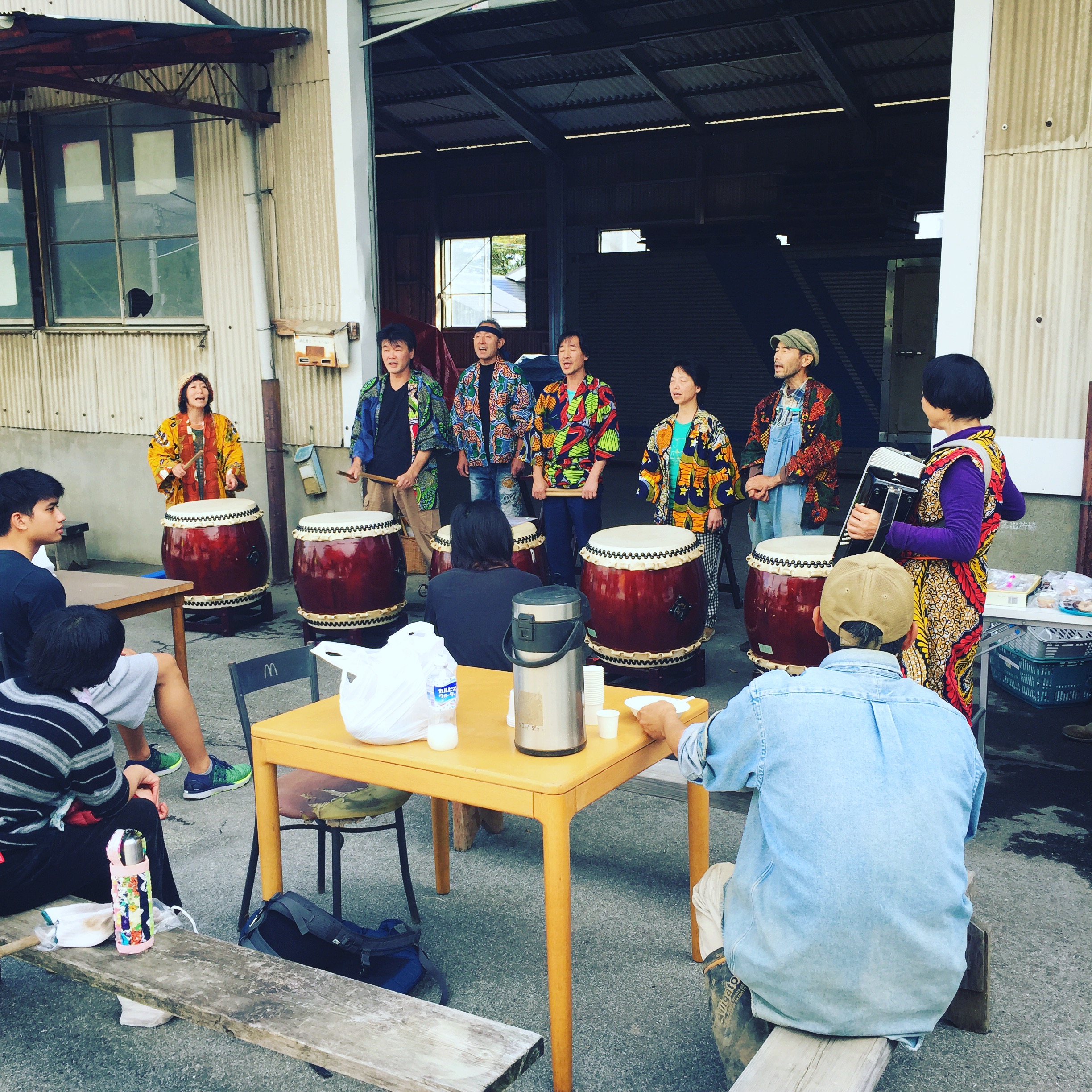 地域の方も利用者さんもみんなわきあいあい稲刈りをし、合間には恒例の地元バンド“種まき~ず”の田楽太鼓の演奏や、豆の花のおいしいビュッフェランチもあり、たいへん盛り上がり、心もお腹も満たされます~♪豆の花さん(*2)では、春の陽農場で作られた無農薬野菜等で作った味噌、豆腐類、パスタソース、ケチャップ、お餅、小麦粉や焼き菓子等々の加工品を販売しています。だから、今回のランチもほとんどが自前の食材で作られており、地産地消で旬産旬消、無農薬で安心安全、しかもとってもおいしいんです!!!このビュッフェランチはこのイベントの楽しみのひとつになっています!