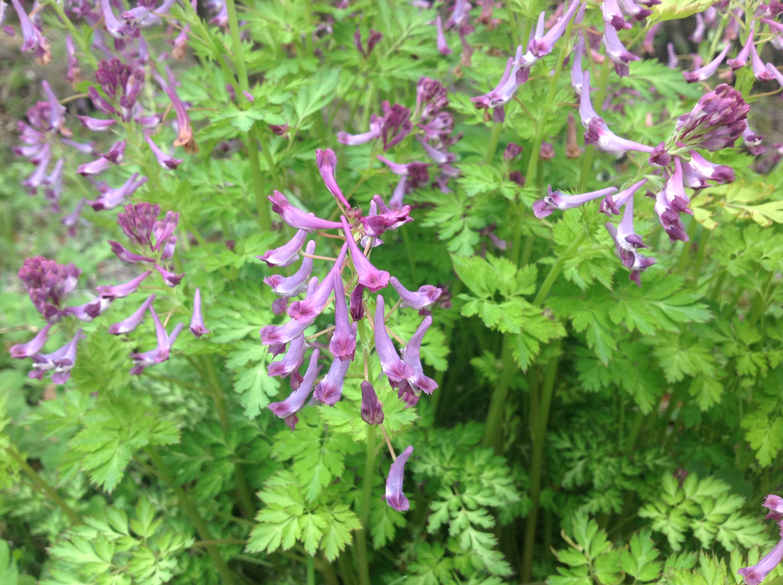 美しい紫色の花、調べたら、ムラサキケマン(紫華鬘)という名前でした。