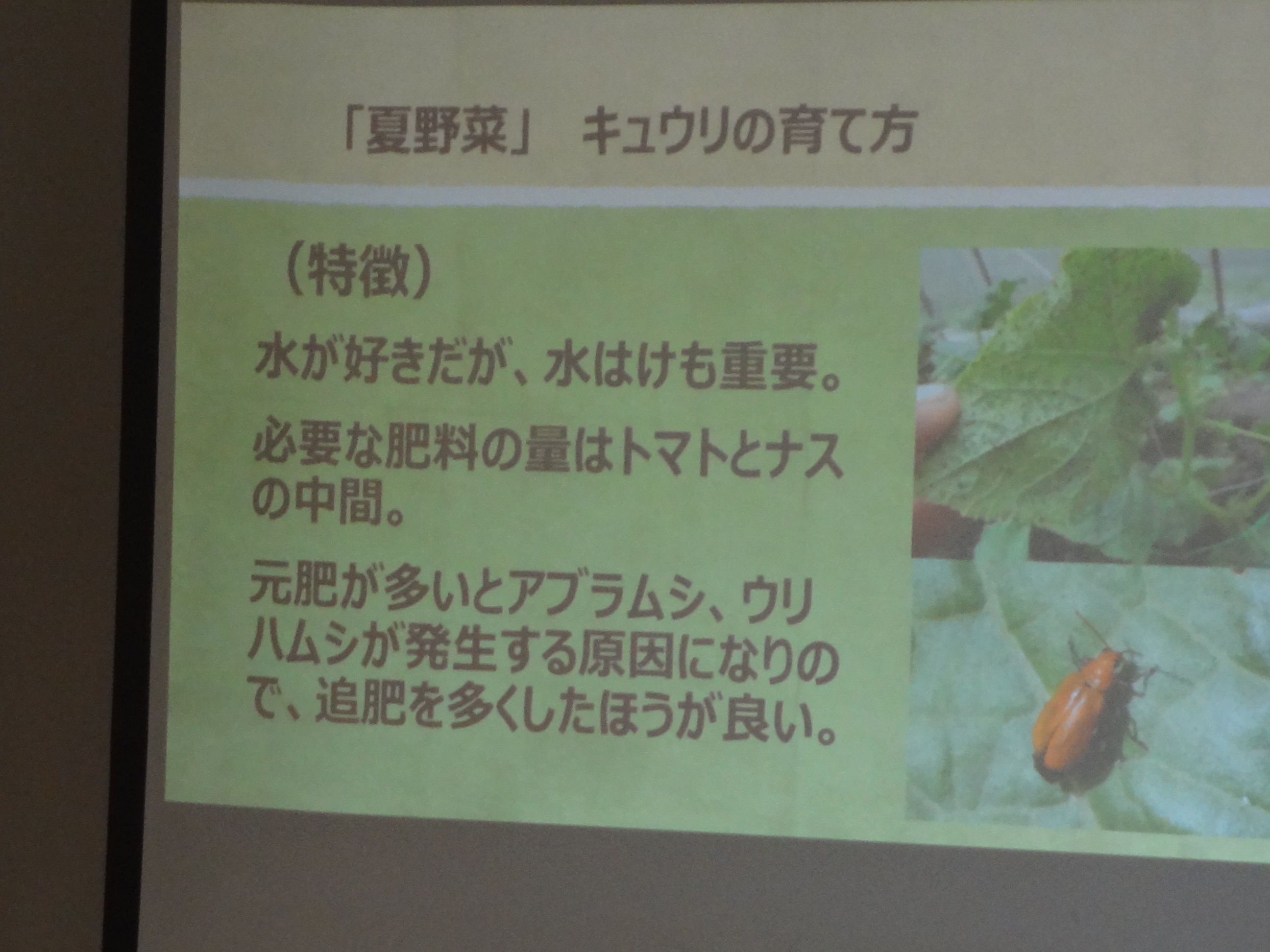 夏野菜のそれぞれの特徴、種まきの時期や育て方を説明されています。