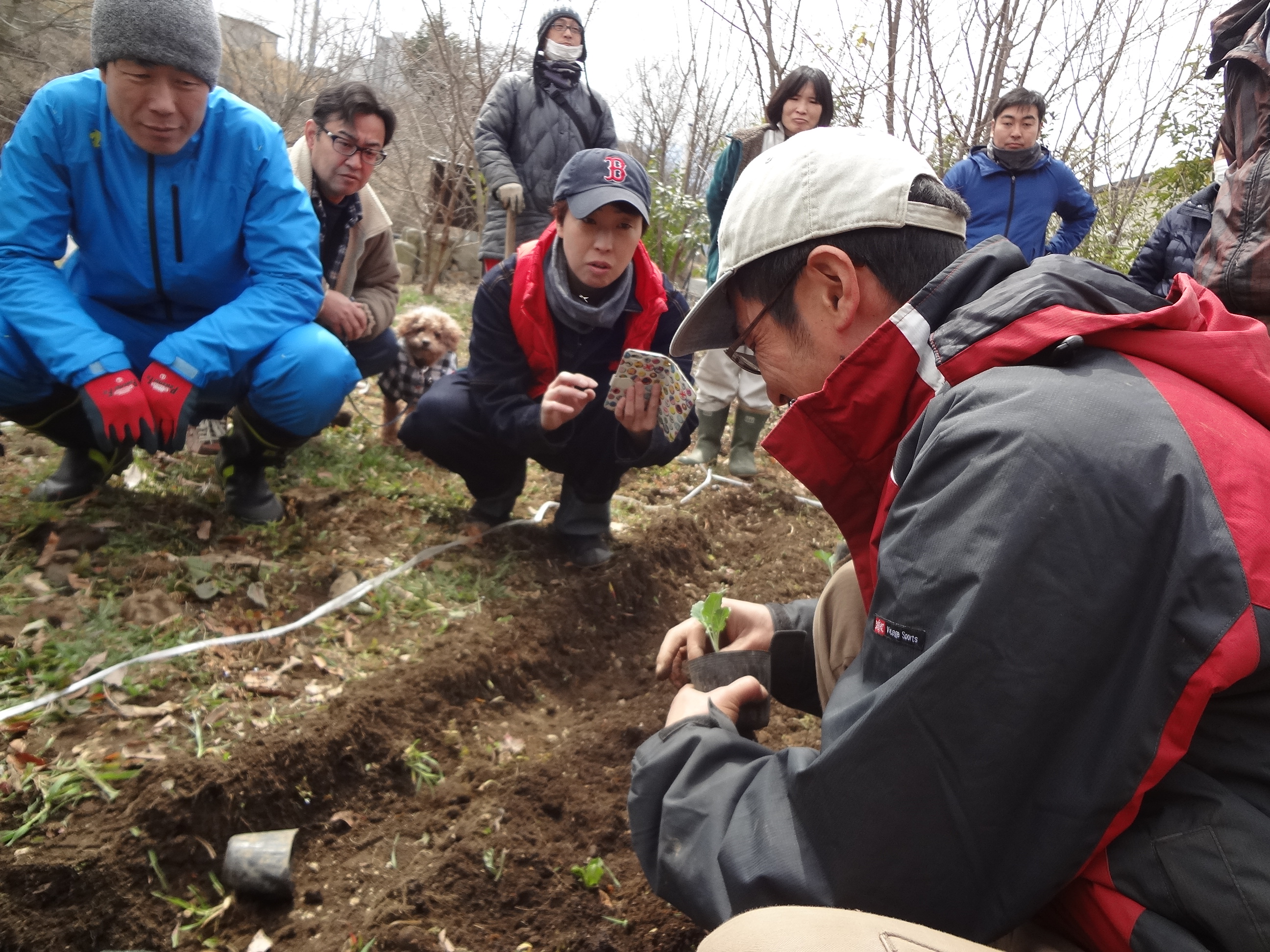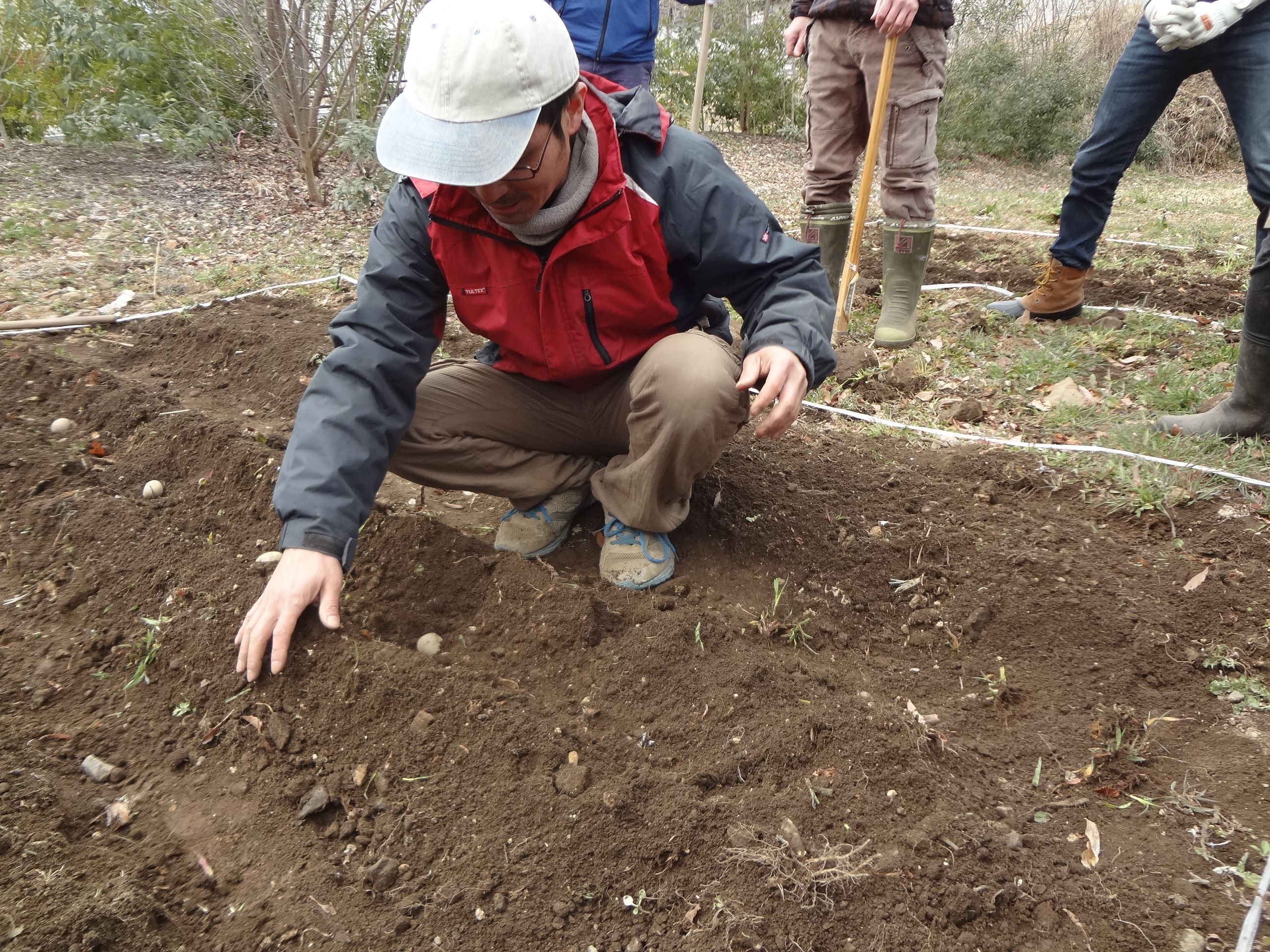 実際に畑に出て、種や苗の植え方を教わりました。