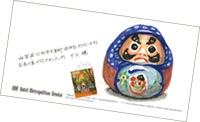 「旅人の目 谷口雅宣絵封筒展」と題した本展は、谷口雅宣・生長の家総裁が、全国59カ所で開催される生長の家講習会の指導で出張した際に、宿舎などで描いた絵封筒(一部、絵手紙)を中心に36点を展示しています。 絵封筒(efuto)とは、封筒の表(おもて)に絵を描き、宛名や宛先、切手も、絵のレイアウトに合わせて自由な位置に書いたり、貼ったりして、遊び心を表現するものです。